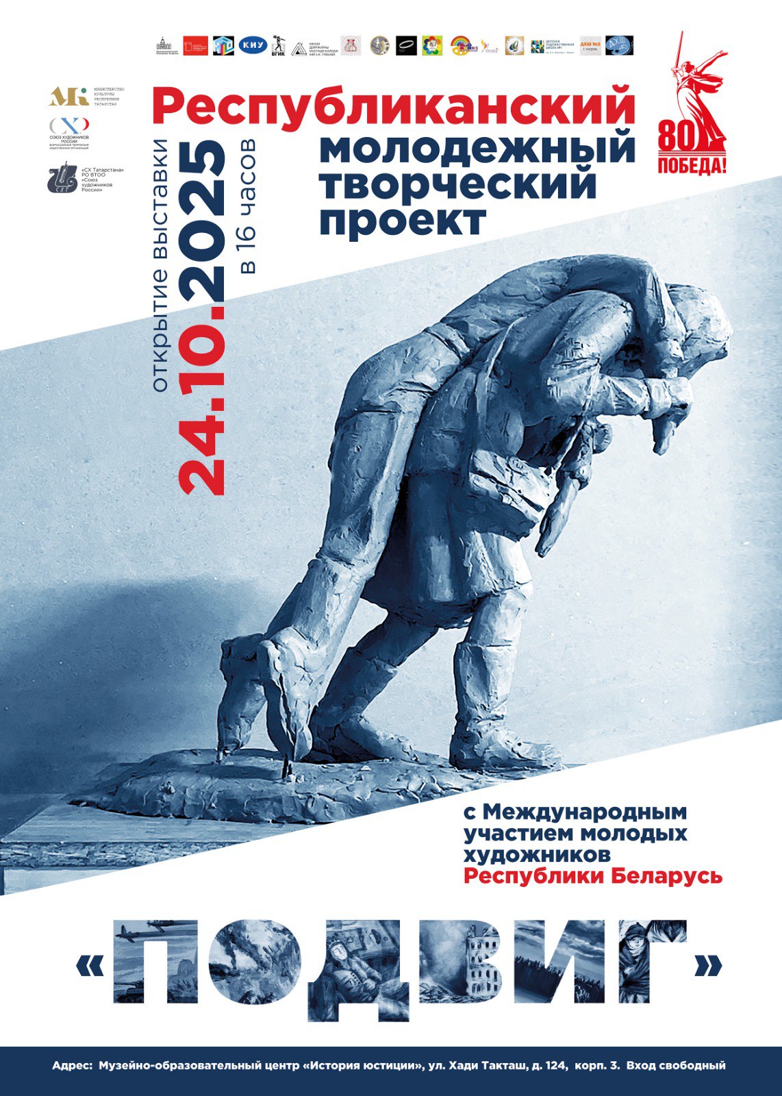 24 октября в Музейно-образовательном центре "История юстиции" состоялось торжественное открытие итоговой выставки Республиканского молодежного творческого проекта «Подвиг»! Это событие стало кульминацией масштабной работы, объединившей молодых художников Республики Татарстан, России и Беларуси в стремлении сохранить историческую память и осмыслить тему героизма. Данный проект стартовал в начале 2025 года в рамках Года защитника Отечества и празднования 80-летия Победы в Великой Отечественной войне. Организатором проекта выступил «Союз художников Татарстана» региональное отделение ВТОО «Союз художников России» при поддержке Министерства культуры Республики Татарстан.