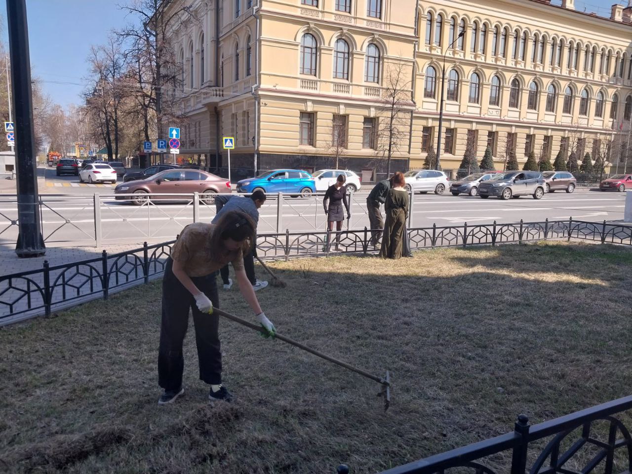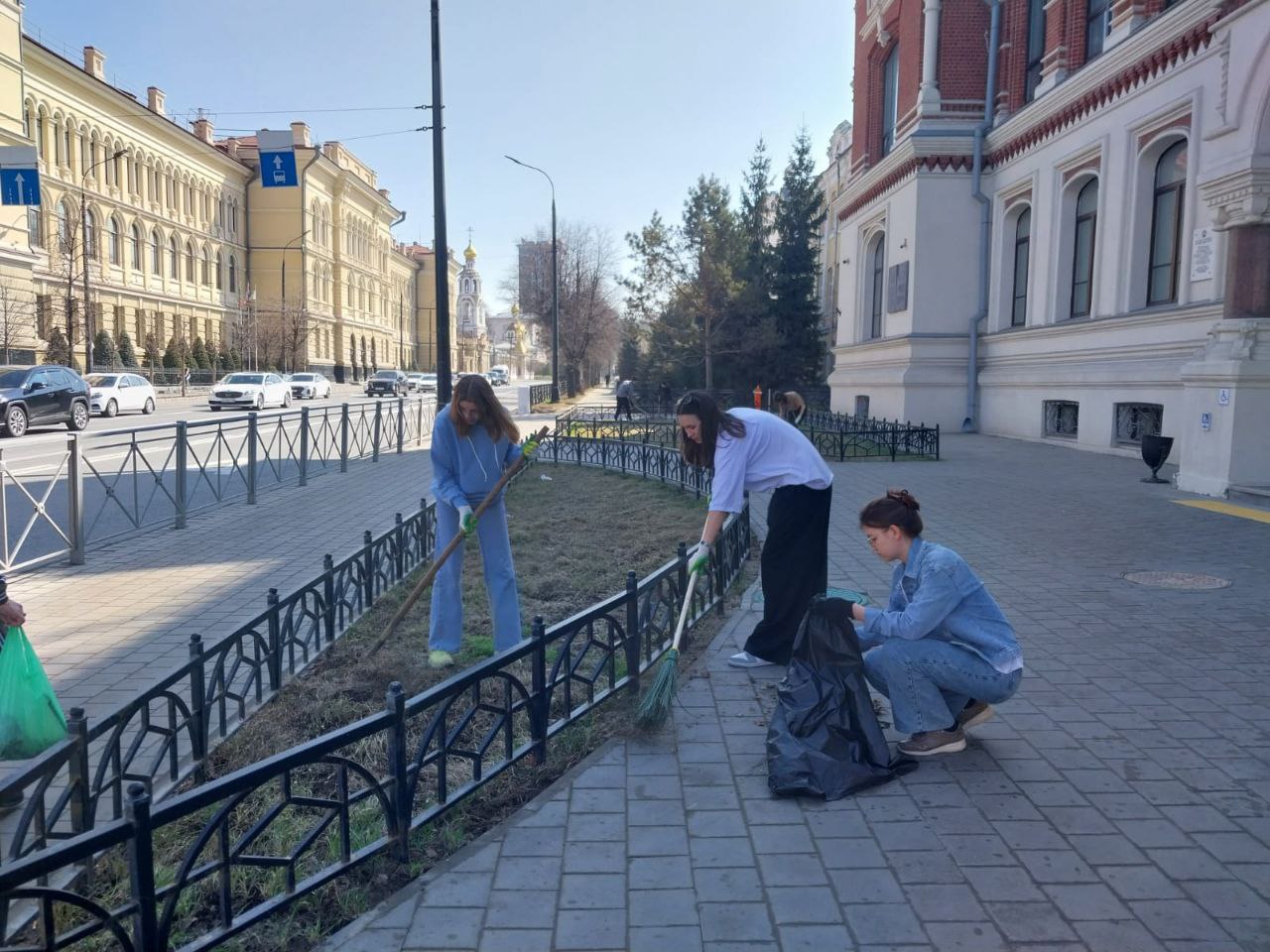 Вооружившись необходимым инвентарем, студенты очистили территорию от мусора, подмели дорожки и привели в порядок клумбы возле центрального входа. Юные художники и дизайнеры внесли свой вклад в сохранение чистоты города и проявили заботу об историческом здании, в котором проходит их обучение.