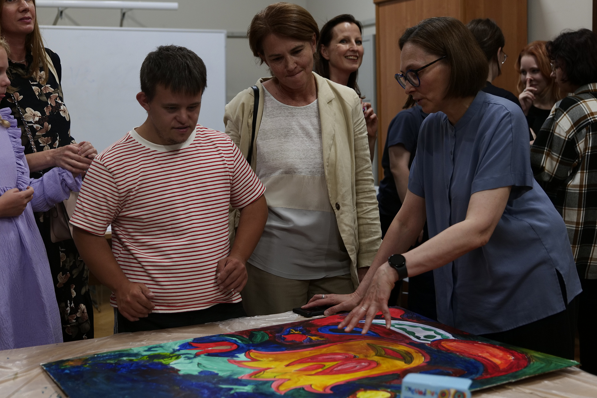 Директор училища Ольга Александровна рассказала историю создания студии и результаты работы. Во время торжественной части учащиеся АРТ-студии под руководством студентов-тьюторов создавали живописные работы.