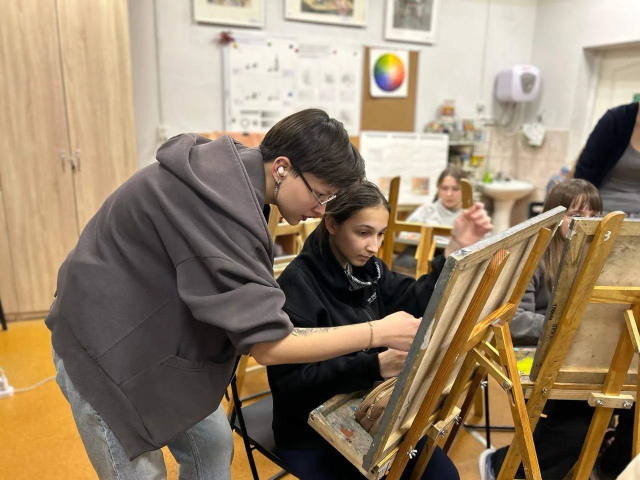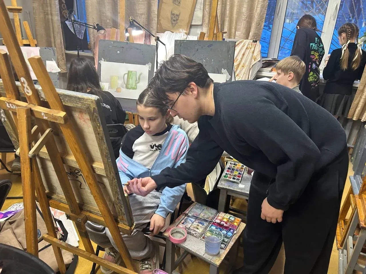 Для студентов живописцев работа в художественной школе стала возможностью глубже осознать собственные знания через преподавание. По словам самих ребят, когда художник учит, он «рисует руками детей», создавая одновременно несколько работ. Практика в ДХШ № 2, где царит атмосфера особой теплоты, творчества и единения, помогла студентам понять, что важно передавать не только мастерство, но и любовь к искусству.