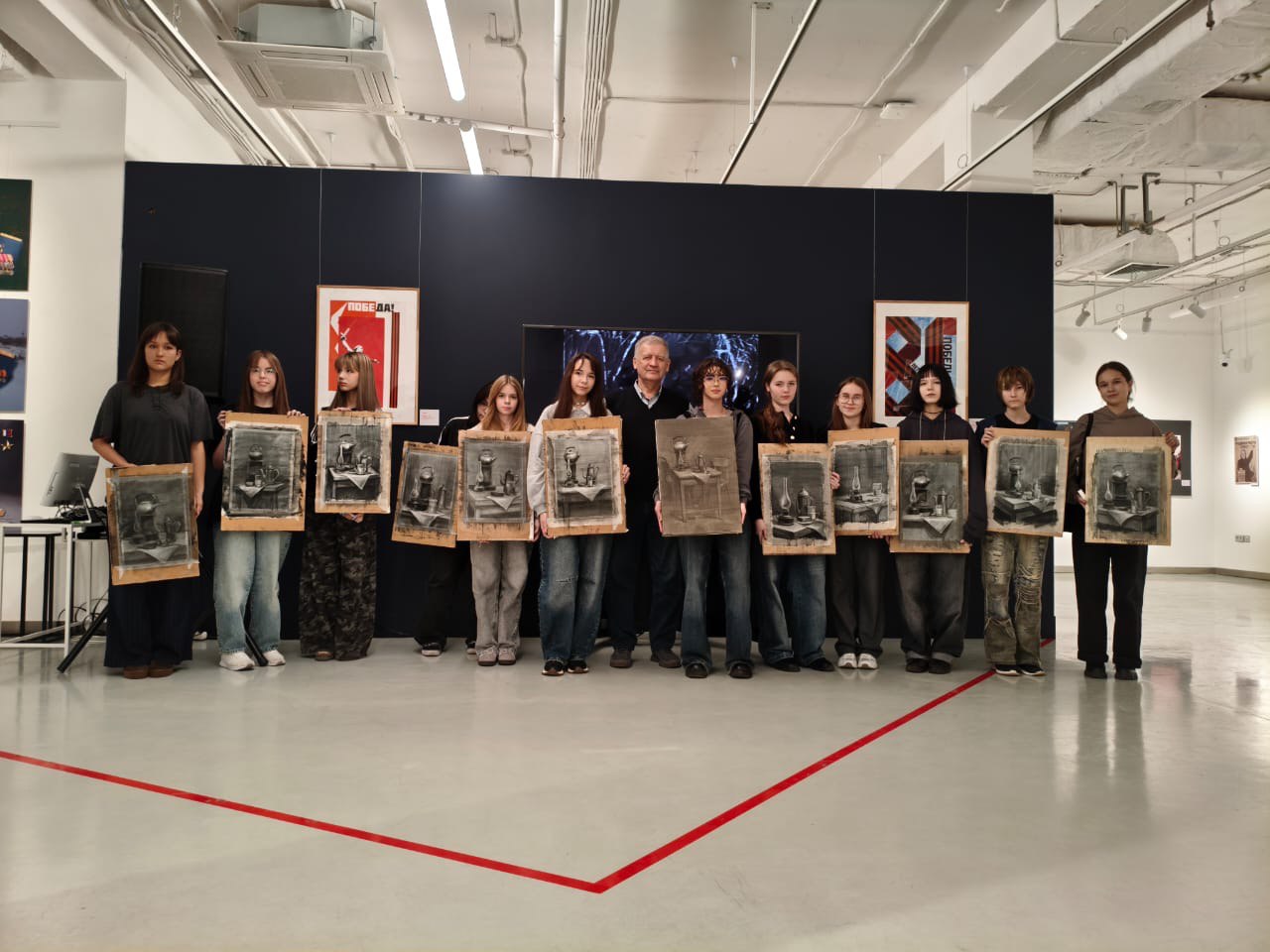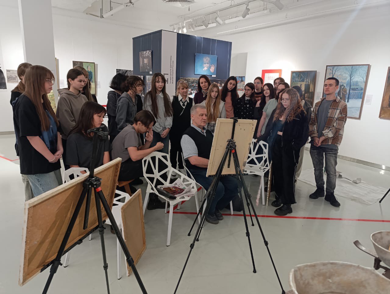 В организации и проведении мастер-класса помогали студенты 3-го курса художественного училища. Они участвовали в подготовке рабочего пространства для ребят, а также обучались процессу проведения мастер-класса.